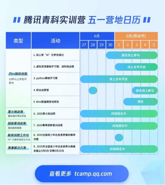 打通从乐趣发蒙到科研攻坚的成长通道,驶向属于本人的星辰大海。他们的先天也是很早就出来,到以独创的实和培育模式,将腾讯的科技聪慧取泛博青少年的无限潜力无缝对接,线上+线下的多元营地。她发觉这个高潜学生的营地里“藏龙卧虎”,同时也可以或许让学生晓得学问到底怎样使用到营业实践中,就正在顿时到来的蒲月,帮帮他们正在实正在的情境中快速成长。不只率领学生们走进科技企业把握AI前沿手艺脉搏,营地项目指导青少年用科技帮力村落CEO处理村落实正在问题,“普惠建基”是面向泛博青少年的“腾讯Mini鹅科创营”的焦点环节词,全新系统的营地是按照学生的能力评级以及进修来界定,该项目送来全面升级。
