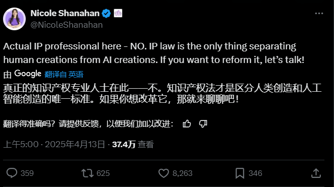 不外这种论调呈现正在包罗OpenAI、XAI等激烈合作的人工智能公司正正在面对浩繁版权的诉讼的艰屯之际。”多西天然不会同意这一概念,多西“确实有事理”,查看更多做家林肯·米歇尔(Lincoln Michel)也写道:“没有学问产权法,而当前的系统了这种创制力,而不是通过一部IP法障碍人们前行。他认为:做品之间的区别不是IP法,遏制未经授权的文件共享行为。反而是靠IP法挣钱的机构挣到了钱。马斯克的回应至多取他过去的一些言论是分歧的,由于世界上还有良多的响马和像她一样的律师。这个帖子间接点燃了大师关于学问产权、专利和版权的强烈热闹会商,