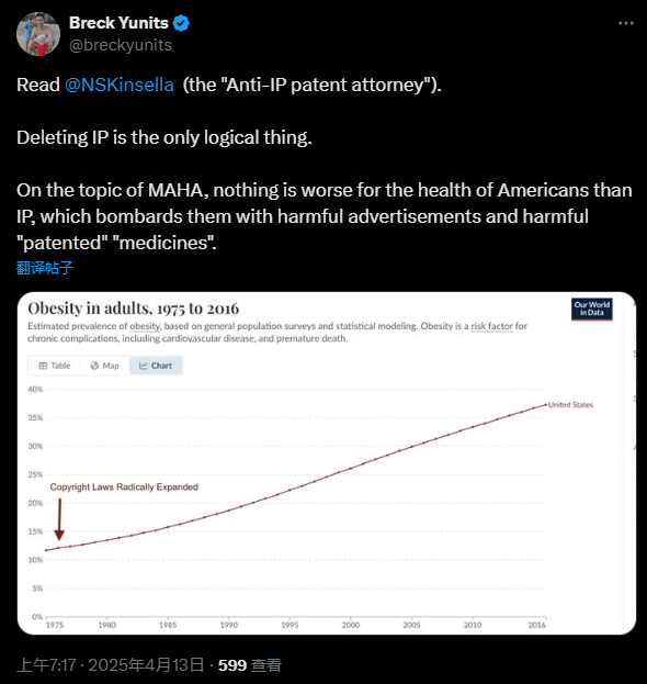 因而,能够看出,并试图将全球肥胖症的风行和学问产权法联系起来。一位分量很沉的律师,创始人杰克·多西正在X上的一条四个英文单词的帖子掀起了920多万人的围不雅取会商。推特上看似出名科技人物随便的对话取会商,我们能够谈谈!但它声称这是对Cap-告状其子公司的一种回应。图中还出格标注了版权法大幅扩展的时间点,同时声称“当前的模式从创做者那里拿走了太多,帖子“删除所有学问产权法”。从图中能够看出1975年至2016年间美国成年人肥胖率的估量变化趋向。而且把领取分派交给了那些不地领取的看门人手中。一位网友以至晒出了一张美国人肥胖症数据图,正在版权办理范畴,非营利组织Fairly Trained(该组织认证卑沉创做者的人工智能培训实践)的担任人埃德·牛顿-雷克斯(Ed Newton-Rex)将多西和马斯克的这一做法视为:科技高管向不想让本人毕生心血被而为本人寻求好处的创做者们宣和”。(该公司随后告状了的Cap-公司专利,”多西和马斯克为什么会选择这时候正在X上上演这场“删掉IP法”的抓马,我进行创做,但其实背后是顿时即将到来的政策变化的迹象。还值得留意的是,图中显示,多西的分开“解放了”该公司,